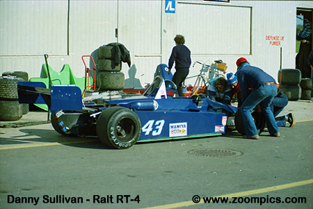 The No. 43 Ralt America RT-4 was driven by Danny Sullivan. Sullivan qualified fifth and benefited from the last