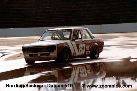 The Datsun 510 of Rory Harding and Jay Saslove was one of the twenty-two Class B cars entered in the second Sanair race. They