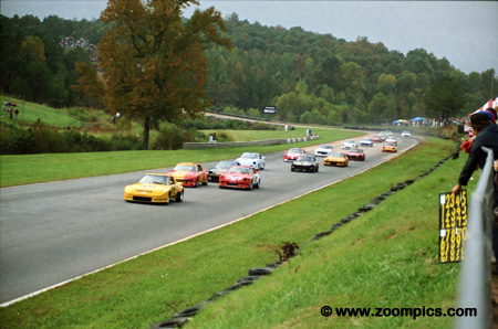 The GT2 class takes the green. Jumping into the lead is the Mazda RX-7 of Robert Reed. Reed would not be challenged during the 18-lap