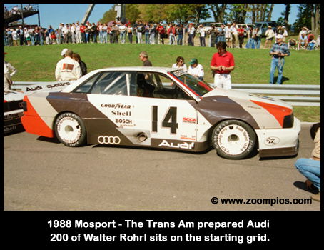 cars. He was partnered with Haywood at Mosport and Road America. Walter Roehrl also competed in the 1988 Trans Am championship for Audi taking wins at