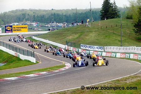 Each event boasts a purse of $17,500, with the winner being awarded $5,000 – the series pays through to twentieth place. There is also a year-end points fund of $15,000. During the 1996 season, $225,000 will be presented. The twelve race tour included events in the United States and Canada contested on ovals, road courses and temporary street circuits. The season starts in late January on the tri-oval at Walt Disney World Speedway. Teams remain in Florida for a race a month later on the temporary street circuit at St. Petersburg. In March, the series travels to Phoenix International Raceway to compete on the 1.0-mile oval. The championship returns four weeks later to battle on the road course. Next is the only stop in Canada for round five at Mosport Park. Returning to the United States drivers will race on the oval at Indianapolis Raceway Park. This is followed by another oval event located at Richmond International Raceway. The series only double-header weekend takes place at Watkins Glen International. Round ten is conducted at the Mid-Ohio Sports Car Course. The penultimate event of the year is held on the oval at New Hampshire International Speedway, with the finale taking place at Las Vegas Motor Speedway. Cars in the series are manufactured by Van Diemen, Swift, Reynard and Piper. They are powered by a 2.0-liter four-cylinder overhead camshaft engine, which produces approximately 150-horsepower at 6,200-rpm. The fully-independent front and rear suspensions are equipped with adjustable sway bars and shock absorbers. The suspension attaches to a steel space frame chassis which is covered by an aerodynamic fiberglass body and wings mounted on the front and rear of the car. Thirteen-inch diameter wheels are used with a maximum width of six inches on the front and eight inches on the rear. The vehicles must weigh at least 1,175-lbs. with the driver. The fifth round of the 1996 United States Formula Ford 2000 National Championship was held at Mosport Park as a support event for the Trans Am series. Competitors would race around the ten turn 2.459-mile road course for twenty laps.