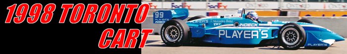 The 1998 Molson Indy Toronto was eleventh of the nineteen rounds that year. The race took place on a 1.76-mi/2.82-km temporary street course using the Toronto Exhibition grounds. The event debuted in 1986 and proved very popular with local race fans. The race included six former winners - Bobby Rahal (1986), Al Unser Jr. (1988 and 1990), Michael Andretti (1989, 1991, 1992, 1994 and 1995), Paul Tracy (1993), Adrian Fernandez (1996) and Mark Blundell (1997). |