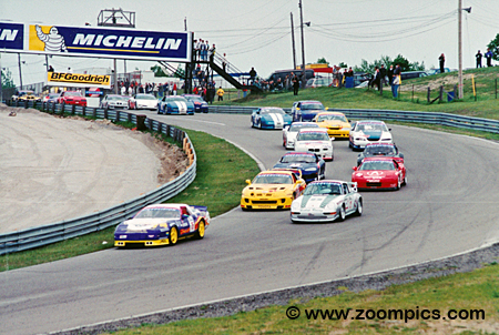 Twenty-one competitors enter corner one at Mosport International Raceway for the first round of the 1999