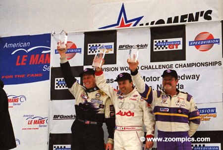 The World Challenge GT podium at Las Vegas Motor Speedway. In the center is Michael Galati - all smiles