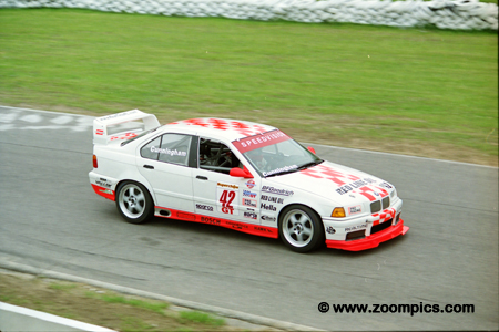One the pole was Peter Cunningham in a BMW M3. Next to Cunningham is Bobby Archer, who would grab the lead on lap two and never look back