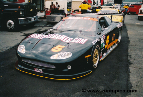| Gentilozzi’s Jaguar XKR was built by Rocketsports, a company he owned. The Trans-Am-prepared XKR was a far cry from the street-going version. The BFGoodrich Tires series cars are required to use a chrome-moly steel tubeframe chassis. The XKR was designed and constructed by Rocketsports. The engine displacement and the induction system determine the minimum weight of series cars. The Trans-Am Jaguar must not weigh less than 2,675 pounds. The production XKR has a curb weight of 4,021 pounds. |