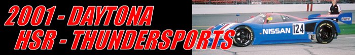 The Historic Sportscar Racing (HSR) club was founded in the mid-70s with the goal of celebrating race cars from the past. HSR provided attendees at the 2001 Rolex 24 at Daytona International Speedway with an opportunity to view some of these historic vehicles. On Friday, there was the 1.5-hour Rolex Enduro for the HSR’s Thundersports Cup Enduro class. The Thundersports category includes former Can Am, FIA sports prototypes, IMSA GTP, GTP Lights and two-liter sports prototypes. Prior to the Rolex 24, Saturday, the ’24 Minutes of Daytona’ featured famous cars and drivers. Below are images from some of the HSR events at Daytona International Speedway during the 2001 Rolex 24 weekend.