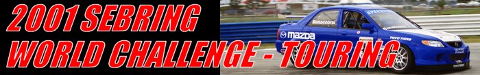 To prevent any driver/car combination from dominating the class and ensuring tight competition, the R.E.W.A.R.D.S. System was implemented. Introduced in 1995, R.E.W.A.R.D.S. is the acronym for ‘Rewarding of Equalizing Weight Assigned to Reduce Driver Sensitivity.' This weight equalization rule adds or removes ballast from a car based on the finishing position of a driver. There were eight-race weekends during the 2001 season. The opening rounds were in March at Texas Motor Speedway and Sebring, Florida. Teams weren’t back in action until May at Mosport International Raceway and Lime Rock Park. Lime Rock would be a doubleheader for the Touring Cars. The next event would be at Detroit’s Belle Isle which was just for the Grand Touring category. The championship would move to the west coast with races at Sears Point Raceway, Portland International Raceway and Mazda Raceway Laguna Seca. The final weekend was at Road Atlanta. The schedule initially included a round at Charlotte Motor Speedway but when that venue was cancelled Road Atlanta became a doubleheader weekend. Round two was at Sebring International Racing as part of the 12 Hours of Sebring weekend. Twenty-eight World Challenge Touring cars would compete in a 50-minute race around the 3.74-mile seventeen-turn road course. |