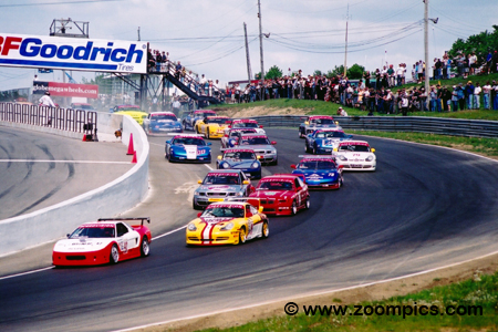 The pole-sitter, Peter Cunningham leads the field of twenty-two starters into Mosport International Raceway’s corner one.