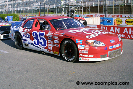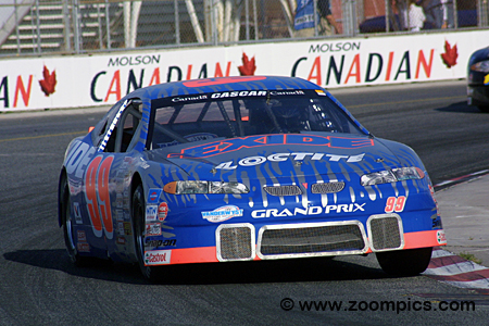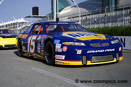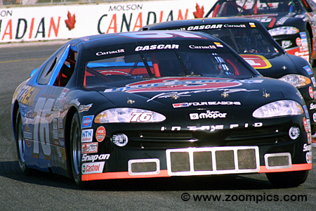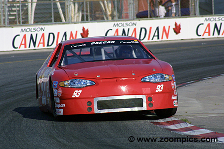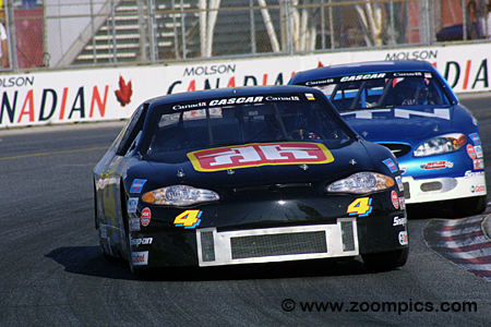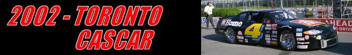 The premier division of CASCAR is the twelve-race National Super Series. This championship kicks off at Delaware Speedway on the Victoria Day long weekend. A week later, the teams travel to Peterborough Speedway for round two. The first weekend of June, teams travel to St. Eustache. The next two events are held on the oval and road course at Mosport. Mosport is followed by race six at Cayuga International Raceway. Toronto s Exhibition Place is the location for the series most high-profile event. Drivers will compete on the temporary street circuit in front of an audience of over 100,000 fans. Then the series travels West to Calgary for an event at Race City Speedway and another temporary track at Vancouver s Pacific Place. Returning to the East, drivers compete at Autodrome Montmagny in August, and teams race in round eleven at Kawartha Speedway. The season ends where it started, Delaware Speedway. The cars competing in CASCAR are constructed to specifications and rules similar to those of most stock car series. The minimum weight for the vehicles without the driver is 2,850 lbs, and they must have a minimum ground clearance of four inches. The tube-frame chassis is constructed of 1.75-inch-diameter steel tubing with a 0.095-inch wall thickness and is fitted with a fiberglass body representing automotive manufacturers such as Chevrolet, Dodge, Pontiac, and Ford. Engines eligible for the series include the 350-cu.in. Chevrolet, 351-cu.in. Ford and 360-cu.in. Dodge. The motors are equipped with a four-barrel Holley 390-CFM carburetor and produce 400 to 420 horsepower. The driveline is fitted with an OEM four-speed transmission. Safety equipment includes a 5-point safety harness and an aluminum safety seat with a padded headrest. Drivers are required to wear full coverage Nomex or Nomex, P.B.I., Kevlar Blend fire suits. Fire Retardant gloves and socks are mandatory. A window net is required on the driver's side. Also, an on-board fire extinguisher is needed with two outlets. These must be accessible to safety crews. Race seven of the twelve for the 2002 CASCAR Super Series was held at Toronto's Exhibition Place. Thirty-seven drivers would take the starter's flag for thirty-six laps around the eleven-turn 1.755-mile temporary street circuit. |