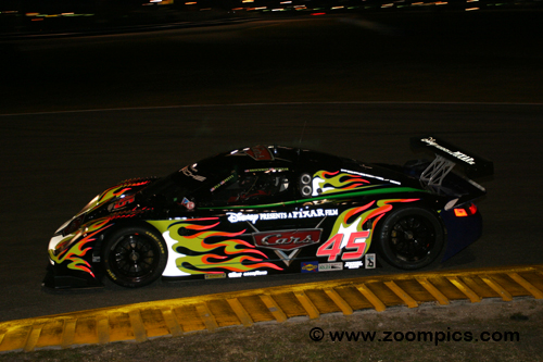 | The No. 3 Toyota-powered Fabcar of Darius Grala, Oswaldo Negri, Josh Rehm, and Guy Cosmo retired after catching fire on lap 403. Sharing the driving duties on the No. 58 Brumos Racing entered Fabcar FDSC/03 were David Donohue, Mike Borkowski, Randy Pobst and Chris Bye. After qualifying, the Porsche-powered car was the second fastest and started on the outside of the front row. The team was leading the race but retired when the engine failed at about the six-hour mark. The second Brumos Fabcar was driven by Hurley Haywood, J.C. France, Scott Goodyear and Scott Sharp. The car was gridded third and finished second in class and fifth overall. The category victory went to the Multimatic MDP1 Ford Focus. |