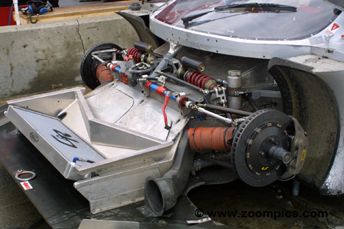 | Front Suspension | FABCAR designed and fabricated unequal length double wishbone with pushrod actuated springs/shocks, Grand Am spec Riley and Scott spindles and center lock nuts |