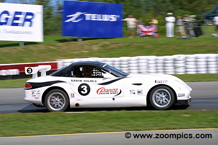In 2003, there were two racing schedules, the GT and GT Pro series. Depending on an individual's interests and skill level, it was possible to compete in either or both series. The 2003 Panoz GT Pro / GTS Pro Race Series was an official support race for the American Le Mans Series. The Pro division participates at four events – Sebring, Mosport and two visits to Road Atlanta. The Pro GT class cars are "spec" vehicles fielded by the Panoz Motor Sports Group. All are equally-prepared Panoz Esperantes. The Pro GTS category is for privately entered cars. They are also built by Panoz Auto Development. The Pro GTS and Pro GT cars race together at four Panoz Racing Series events but are scored separately. The competitors drive the Panoz Esperante sports cars. The race version of the Esperante, the Panoz GT-RA, is a tube-frame chassis powered by a Ford DOHC 4.6-liter engine, which produces 320-horsepower. Fitted to the motor is a five-speed Tremec T-45 transmission. Stopping the 2,680-pound cars are four-piston AP calipers with 13-inch vented rotors on the front and 12-inch on the rear. Round three of the 2003 North American Panoz GT Pro Racing Series was held at Mosport International Raceway as a support event for the American Le Mans Series. Drivers would compete on the ten-turn 2.459-mile road course in a forty-five-minute timed event. The event attracted only one Panoz GTS competitor, Wes Ramsdale. Ramsdale qualified twelfth fastest but started at the rear of the field. He landed in the gravel trap on lap-17 of the twenty-seven completed.