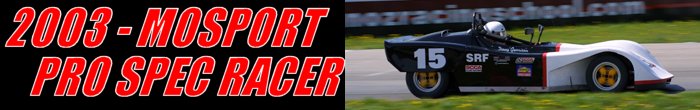 The Spec Racer Ford is a single-seat, open-cockpit tube-frame chassis sports racer manufactured by SCCA Enterprises in Colorado. The cars are identical and powered by a sealed four-cylinder, SOHC, 1.9-liter Ford engine with a five-speed transmission. This combination produces 105-horsepower and a top speed of 135-mph. The suspension uses a rocker arm design (front and rear) with coil-over shocks on each corner and adjustable front and rear sway-bars. The 2003 Pro Spec Racer season consisted of the Atlantic and Pacific Tours divisions. However, the series did not receive the support of event promoters, sponsors and participants. As a result, the Sports Car Club of America threw the checkered flag on the series. After two races, the Pacific division was canceled and there were three contests before the Atlantic Tour ended. Round three or the final event of the 2003 Pro Spec Racer Atlantic Tour, was held at Mosport International Raceway. Competitors would race for eighteen laps around the ten-turn 2.459-mile road course. This year, the Mosport event attracted eight starters compared to 2002, with twenty-eight participants.