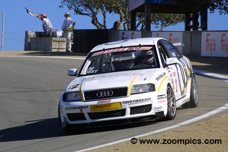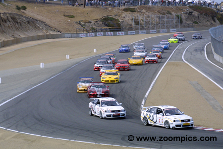 To prevent any driver/car combination from dominating the class and ensuring tight competition, the R.E.W.A.R.D.S. System was implemented. Introduced in 1995, R.E.W.A.R.D.S. is the acronym for ‘Rewarding of Equalizing Weight Assigned to Reduce Driver Sensitivity.' This weight equalization rule adds or removes ballast from a car based on the finishing position of a driver. There were ten-race weekends during the 2003 season. The opening round was in March at Sebring, Florida followed by back to back race weekends in May at Mosport Park and Lime Rock. Two races would be held for the Grand Touring category at Lime Rock. Lime Rock was followed by the first of two events held at Road Atlanta (June and October). Both classes competed at Infineon Raceway but the next event at Mid-Ohio was only for Touring Cars. The series moved to Road America, Mazda Raceway Laguna Seca and then the penultimate round at Road Atlanta. The series finale was held in San Juan, Puerto Rico. Round eight of the 2003 SCCA Pro Racing Speed World Challenge Grand Touring Championship was held at Mazda Raceway Laguna Seca. The race was scheduled to be fifty-minutes in length around the eleven-turn 2.238-mile road course. |