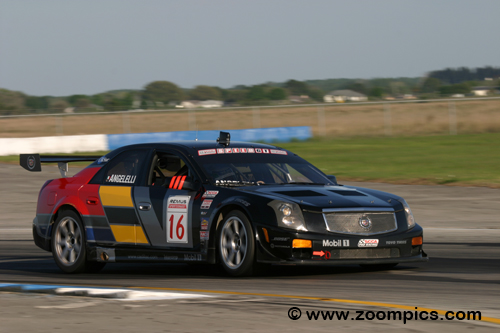 Race one of the World Challenge series was held at Sebring International Raceway. The No. 8 Cadillac CTS-V of Max Angelelli qualified on the pole, and his teammate, Andy Pilgrim, in the No. 8 Cadillac, started third. At the start, Angelelli lost the lead to the Audis of Michael Galati and Randy Pobst, but two laps later, he was in first place. He held the spot to the checker. It was a different story for Pilgrim. His car stalled immediately before the standing start, leaving his Cadillac behind thirty-one other vehicles. After finally starting the car, Pilgrim climbed back through the pack, passing as many as four cars per lap. He crossed the finish in second place, 0.358 seconds behind Angelelli. |