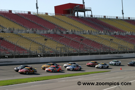 While the classifications changed the rules remained the same. The cars are relatively unchanged from their road-going versions – modifications are mandated mainly for safety – roll cages, window nets, etc. They also used spec DOT-approved tires produced by Hoosier. Based on performance potential, the cars are placed in the Grand Sport or Sport Touring group. The 2004 season consists of ten race weekends and starts in January at Daytona International Speedway, which is followed by a second event in Florida at Homestead-Miami Speedway. In April, the series will make a visit to Phoenix International Raceway for the Twin 200s. The Grand Sport and Sport Touring teams will compete in separate races. Then the series travels north of the border to compete at Le Circuit Mont-Tremblant. After this event, race weekends will take place Watkins Glen International, Mid-Ohio Sports Car Course and a second visit to Homestead-Miami Speedway. The final three rounds will be conducted in October and start with Virginia International Raceway. The penultimate weekend is at Alabama’s, Barber Motorsport Park, with the finale taking place at California Speedway. The 2004 Grand Am Cup series season finale was held on the 2.8-mile roval at California Speedway. Team, Manufacturer and Driver titles would be decided in the Lexus Grand American 250. As a result, it was a ‘no holds barred’ event with a lot of contact and damaged race cars.