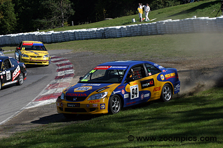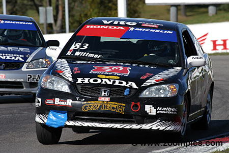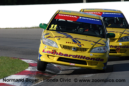 The original series was the ‘brainchild’ of Gilles Bourcier and debuted in 1976. After getting its start in Quebec, the championship included Ontario tracks and racers. By 1987 there was enough demand to have East and West divisions. From its inception until 1992, the series attracted approximately 400-drivers, including some of the great names in Canadian motor racing – Richard Spenard and the Villeneuve brothers, Gilles and Jacques. The inaugural event of the 2004 season will be held on the Victoria Day weekend at Mosport International Raceway. Next on the calendar is the series most prestigious event at Circuit Gilles Villeneuve as a support event for the Canadian Grand Prix. Then teams will return to Mosport for the second of four visits to this track. The championship’s only doubleheader takes place at Shannonville Motorsport Park on the Canada Day weekend. Shannonvile is followed by another high profile event, which takes place at the Grand Prix de Trois-Rivieres. Round seven is held during the American Le Mans Series weekend at Mosport. Teams return to Quebec for the next two races – Autodrome St-Eustache and the penultimate round at Le Circuit Mont-Tremblant. The finale is held where the season started, Mosport. The cars competing in the series are 2004 Honda DX Coupes. The Honda DX is powered by a 1.7-liter 16-valve SOHC engine, which produces 115-horsepower at 6,100-rpm. The DX is also equipped with a 5-speed manual transmission. An independent suspension design is used on the front and rear of the vehicles. All cars are required to race on Michelin Pilot Sport Cup tires. Modifications to the Hondas such as a roll-cage and window net are mandated for safety. The final round of the 2004 Honda Michelin Challenge Series was held at Mosport International Raceway on October 3rd. Four drivers were in contention for the title and separated by just nine-points; they were Steven Laporte, Didier Schraenen, Nick Wittmer and Normand Boyer.
