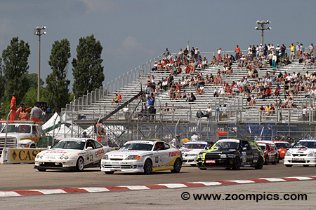 A field of twenty-nine Hankook Touring competitors enter the main straight at Trois-Rivieres, ready for the start of round four.
