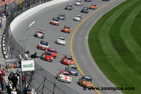 One of the top stories in 2005 was that Hoosier Racing Tire became the exclusive tire supplier for the series. Also making news was the addition of two new race tracks on the schedule. For the first time, the Grand Am series would compete at Mazda Raceway Laguna Seca and Autodromo Hermanos Rodriguez. As in the past, the season opened in February with the Rolex 24 at Daytona International Speedway and ended in Mexico at Autodromo Hermanos Rodriguez. In between these two venues, there were events at Homestead-Miami, California Speedway, Mazda Raceway Laguna Seca, Mont-Tremblant, Watkins Glen, Barber Motorsports Park, Mid-Ohio, Phoenix International Raceway and Virginia International Raceway. There was a total of fourteen events with the series competing at Daytona twice and Watkins Glen three times. The 43nd Rolex 24 at Daytona took place on the weekend of February 5 and 6. There was a total of 62-starters (29-Daytona Prototypes and 33-Grand Touring) which was up from previous year. Drivers would compete for 24-hours on the 12-turn, 3.56-mile track which utilized an infield road course and almost the entire tri-oval. |