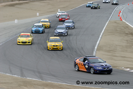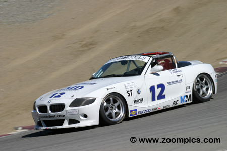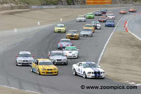 The cars competing in the series are relatively unchanged from their road-going versions – modifications are mandated mainly for safety – roll cages, window nets, etc. They also used spec DOT-approved tires produced by Hoosier. Based on performance potential, the cars are placed in the Grand Sport or Sport Touring group. The 2005 season consists of eleven race weekends and starts in February at Daytona International Speedway. New for this year is a Grand Sport only race in Santo Domingo. Returning to the United States, teams travel to California Speedway in early April. At the end of the month, the series competes at Mazda Raceway Laguna Seca. Then there is a trip to the East Coast for race weekends at Watkins Glen International, Mosport International Raceway, Barber Motorsports Park, Trois-Rivieres and Mid-Ohio Sports Car Course. The penultimate rounds take place at Phoenix International Raceway with the Twin 200s. The Grand Sport and Street Tuner teams will compete in separate races. The finale is held in early October at Virginia International Raceway. The Monterey 200 was conducted on the 2.238-mile eleven-turn road course at Mazda Raceway Laguna Seca. This would be round three for the Grand Am Cup Sport Touring competitors and race four for the Grand Sport teams as they had an additional event in Santo Domingo.