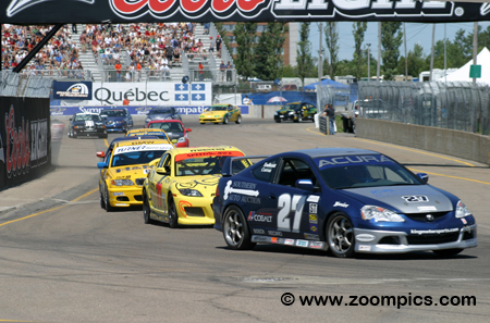 The cars competing in the series are relatively unchanged from their road-going versions – modifications are mandated mainly for safety – roll cages, window nets, etc. They also used spec DOT-approved tires produced by Hoosier. Based on performance potential, the cars are placed in the Grand Sport or Sport Touring group. The 2005 season consists of eleven race weekends and starts in February at Daytona International Speedway. New for this year is a Grand Sport only race in Santo Domingo. Returning to the United States, teams travel to California Speedway in early April. At the end of the month, the series competes at Mazda Raceway Laguna Seca. Then there is a trip to the East Coast for race weekends at Watkins Glen International, Mosport International Raceway, Barber Motorsports Park, Trois-Rivieres (which would hold events for the Grand Sport and Sport Touring classes) and Mid-Ohio Sports Car Course. The penultimate rounds take place at Phoenix International Raceway with the Twin 200s. The Grand Sport and Street Tuner teams will compete in separate races. While the finale is held in early October at Virginia International Raceway. Round six of the Grand Am Cup Sports Touring class was held at the Grand Prix de Trois-Rivieres. Twenty-four teams would compete on the very tight ten-turn 1.521-mile street course.
