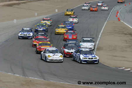 One of the top stories in 2005 was that Hoosier Racing Tire became the exclusive tire supplier for the series. Also making news was the addition of two new race tracks on the schedule. For the first time, the Grand Am series would compete at Mazda Raceway Laguna Seca and Autodromo Hermanos Rodriguez. As in the past, the season opened in February with the Rolex 24 at Daytona International Speedway and ended in Mexico at Autodromo Hermanos Rodriguez. In between these two venues, there were events at Homestead-Miami, California Speedway, Mazda Raceway Laguna Seca, Mont-Tremblant, Watkins Glen, Barber Motorsports Park, Mid-Ohio, Phoenix International Raceway and Virginia International Raceway. There was a total of fourteen events with the series competing at Daytona twice and Watkins Glen three times. Round four was held during the first week of May at the 2.238-mile eleven-turn Mazda Raceway Laguna Seca road course. The inaugural, Road & Track 250 was scheduled to be 250-miles (112-laps) subject to a 2-hour, 45-minute time limit. |