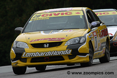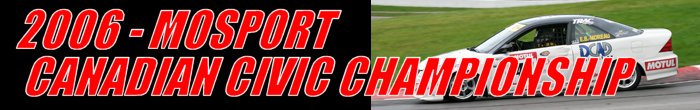 Through the combined efforts of Ontario Race Director Gunter Schmidt and Quebec’s FSAQ President, Marcel Demers, the series was revived with a new name, the Canadian Civic Championship and an eight-race schedule. The 2006 Canadian Civic Championship kicks off on the Victoria Day weekend at Mosport International Raceway. This event is followed by a doubleheader at Le Circuit Mont-Tremblant. Then it is back to Mosport for the second of three stops at this track. Round four sees teams competing at Circuit Gilles Villeneuve as a support race for the Canadian Grand Prix. In mid-July, the series competes at Shannonville Motorsport Park. The penultimate round is a return visit to Le Circuit Mont-Tremblant. A week later, champions are crowned in the series finale at Mosport. The cars competing in the series are Honda DX Coupes. The Honda DX is powered by a 1.7-liter 16-valve SOHC engine, which produces 115-horsepower at 6,100-rpm. The DX is also equipped with a 5-speed manual transmission. There is an improved suspension package and exhaust system for the 2005 season. All cars are required to race on Michelin Pilot tires - Michelin Pilot Sport Cup tires 205-50x15 (dry) and Michelin Pilot XGT V4 tires 205-50x15 (wet) – on 15-inch Honda alloy wheels. Modifications to the Hondas such as a padded roll-cage, braided stainless steel flex-lines, FIA five-point seat harness and window net are mandated for safety. The final race of the 2006 Canadian Civic Championship was held on October 1st at Mosport International Raceway. Titles were to be decided in a sixteen lap shootout around the ten-turn 2.459-mile road course.