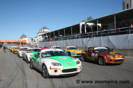 The series is part of the MAZDASPEED Motorsports Development Ladder that promotes champions of Mazda series to the next level of their career. The motivation for drivers to enter the MX-5 Cup division is an opportunity to earn a factory-supported ride in next year’s SCCA Pro Racing Speed World Challenge Touring Car Championship, which is valued at $250,000. All Mazda MX-5 Cup cars receive only minor upgrades. Bolt-on modifications include a new intake manifold and exhaust system, which increases the engine output from 170 to 200-horsepower. All the vehicles are equipped with a six-speed manual transmission and a limited-slip differential. The suspension uses a coil-over kit with double adjustable shock absorbers and roll bars. Khumo tires are mounted on 17X8” wheels. Brake pads, fluid and lines are upgraded for the demands of racing. For safety, the Mazdas are fitted with an eight-point roll-cage welded into the car, racing seatbelts and a fire extinguishing system. The season consists of eight 45-minute timed races. The first event of 2007 will be held in early-April at Houston. Three weeks later, teams travel to Road Atlanta for round two. In May, the championship makes a west-coast swing for contests at Mazda Raceway Laguna Seca and Portland International Raceway. Following these two races, drivers will participate in a double-header at the Burke Lakefront Airport in Cleveland. Then the series heads north of the border to compete in the penultimate round on the streets of Trois-Rivieres. The finale is held in September at Miller Motorsports Park. Round seven of the 2007 SCCA Pro Racing SIRIUS Satellite Radio Mazda MX-5 Cup was held at Trois-Rivieres. Drivers would compete on the eleven-turn 1.521-mile temporary street circuit for 45-minutes.