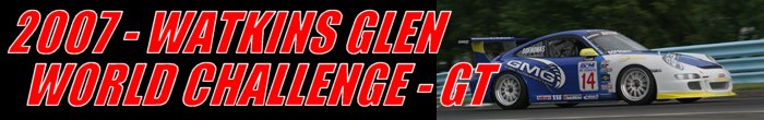 To prevent any driver/car combination from dominating the class and ensuring tight competition, the R.E.W.A.R.D.S. System was implemented. Introduced in 1995, R.E.W.A.R.D.S. is the acronym for ‘Rewarding of Equalizing Weight Assigned to Reduce Driver Sensitivity.' This weight equalization rule adds or removes ballast from a car based on the finishing position of a driver. The maximum amount of weight that can be removed from a car is 100-pounds. And, no more than 200-pounds can be added to a GT class car and 150-pounds to a Touring Car. There were eleven-race weekends during the 2007 season – ten-races for each class. The Touring cars did not compete at Long Beach or a new venue at Lowe’s Motor Speedway. Touring Cars raced twice at Watkins Glen, which was a new addition to the 2007 schedule. Also, the Touring Cars were the only World Challenge class competing at Lime Rock. As in 2006, the opening round was in March at Sebring, Florida and ended in late October at Mazda Raceway Laguna Seca, California. Round five of the 2007 SCCA Pro Racing Speed World Challenge for Grand Touring competitors was held at Watkins Glen International. The series had not visited Watkins Glen since 1998. Twenty-six competitors would race around the eleven-turn 3.337-mile circuit for fifty-minutes.