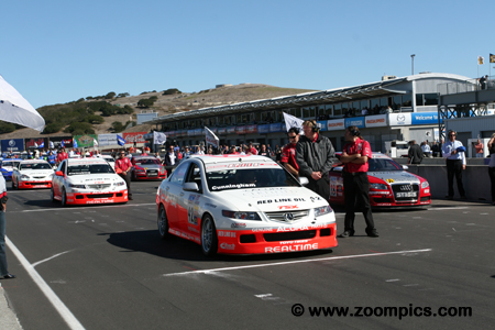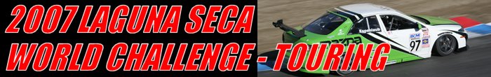 To prevent any driver/car combination from dominating the class and ensuring tight competition, the R.E.W.A.R.D.S. System was implemented. Introduced in 1995, R.E.W.A.R.D.S. is the acronym for ‘Rewarding of Equalizing Weight Assigned to Reduce Driver Sensitivity.' This weight equalization rule adds or removes ballast from a car based on the finishing position of a driver. The maximum amount of weight that can be removed from a car is 100-pounds. And, no more than 200-pounds can be added to a GT class car and 150-pounds to a Touring Car. There were eleven-race weekends during the 2007 season – ten-races for each class. The Touring cars did not compete at Long Beach or a new venue at Lowe’s Motor Speedway. Touring Cars raced twice at Watkins Glen, which was a new addition to the 2007 schedule. Also, the Touring Cars were the only World Challenge class competing at Lime Rock. As in 2006, the opening round was in March at Sebring, Florida and ended in late October at Mazda Raceway Laguna Seca, California. |