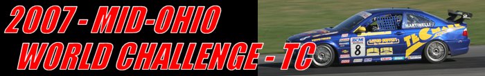 To prevent any driver/car combination from dominating the class and ensuring tight competition, the R.E.W.A.R.D.S. System was implemented. Introduced in 1995, R.E.W.A.R.D.S. is the acronym for ‘Rewarding of Equalizing Weight Assigned to Reduce Driver Sensitivity.' This weight equalization rule adds or removes ballast from a car based on the finishing position of a driver. The maximum amount of weight that can be removed from a car is 100-pounds. And, no more than 200-pounds can be added to a GT class car and 150-pounds to a Touring Car. There were eleven-race weekends during the 2007 season – ten-races for each class. The Touring cars did not compete at Long Beach or a new venue at Lowe’s Motor Speedway. Touring Cars raced twice at Watkins Glen, which was a new addition to the 2007 schedule. Also, the Touring Cars were the only World Challenge class competing at Lime Rock. As in 2006, the opening round was in March at Sebring, Florida and ended in late October at Mazda Raceway Laguna Seca, California. The Mid-Ohio Sports Car Course hosted round seven of the SCCA Pro Racing Speed World Challenge Touring Car championship. Competitors would race for fifty-minutes around the thirteen-turn 2.258-mile road course in an event presented by Trenton Forging. |