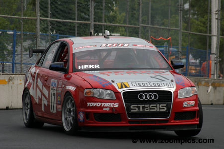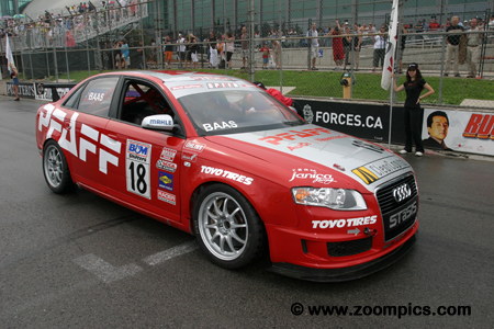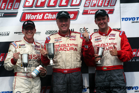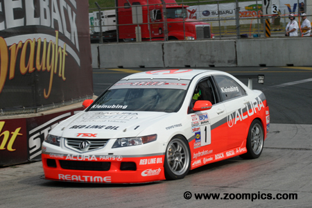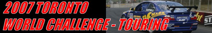 To prevent any driver/car combination from dominating the class and ensuring tight competition, the R.E.W.A.R.D.S. System was implemented. Introduced in 1995, R.E.W.A.R.D.S. is the acronym for ‘Rewarding of Equalizing Weight Assigned to Reduce Driver Sensitivity.' This weight equalization rule adds or removes ballast from a car based on the finishing position of a driver. The maximum amount of weight that can be removed from a car is 100-pounds. And, no more than 200-pounds can be added to a GT class car and 150-pounds to a Touring Car. There were eleven-race weekends during the 2007 season – ten-races for each class. The Touring cars did not compete at Long Beach or a new venue at Lowe’s Motor Speedway. Touring Cars raced twice at Watkins Glen, which was a new addition to the 2007 schedule. Also, the Touring Cars were the only World Challenge class competing at Lime Rock. As in 2006, the opening round was in March at Sebring, Florida and ended in late October at Mazda Raceway Laguna Seca, California. There were twenty entries and nineteen starters for round six of the 2007 World Challenge Touring car race at Toronto’s Exhibition Place. Competitors would be challenged by damp conditions on the eleven-turn 1.755-mile temporary street course. |