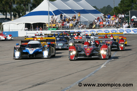 The 2008 ALMS schedule included eleven North American events. The season kicked off with the 56th edition of 12 Hours of Sebring. It was followed by a temporary street circuit at St. Petersburg, Florida. In addition to St. Pete, the series was also competing at Long Beach, Miller Motorsports Park and Lime Rock Park. The remaining events were held at Mid-Ohio, Road America, Mosport, Detroit (Belle Isle), Road Atlanta and the season finale at Mazda Raceway Laguna Seca. The most historic race on the American Le Mans Series schedule opened the season. The fifty-sixth running of the 12-Hours of Sebring took place in mid-March on the 3.74-mile seventeen-turn road course at Sebring International Raceway. Qualifying for the 12-Hours of Sebring took an interesting turn. Eight minutes into the Prototype qualifying, Ben Devlin driving the B-K Motorsports Lola B07/46 had a big accident in turn one bringing an end to the session. IMSA qualifying rules state that if one of the sessions runs for less than 10-minutes the times from both sessions (Prototype and Grand Touring) are discounted. As a result, the grid was set by practice times which meant there were winners and losers.