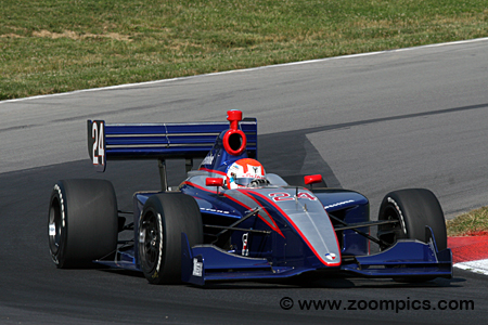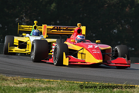 Drivers compete in the Dallara IPS, designed and manufactured for the Infiniti Pro Series. The open-wheel, single-seat racer is equipped with a ground-effect underbody and outboard wings front and rear. The monocoque chassis is constructed using carbon fiber and composites. The Dallara has a minimum weight of 1,430 pounds, which includes all lubricants and coolants used during the event, but does not include fuel or the driver. Firestone Firehawk racing tires are mounted on 15-inch diameter x 10 front and 15-inch diameter x 14 rear wheels. The car is powered by an Infiniti Q45 engine which produces approximately 450 horsepower and is fitted to a Ricardo six forward gear transmission with a sequential shifter. Infiniti Pro Series costs are tightly controlled by the Indy Racing League, with the Dallara IPS costing $137,900 (including the data acquisition system). Rounds eleven and twelve of the 2008 Firestone Indy Lights Series were held at the Mid-Ohio Sports Car Course. Drivers would compete in two forty-lap races around the thirteen-turn 2.258-mile road course. However, Sunday’s contest was delayed due to heavy rain. Officials shorted the race by implementing a forty-minute time limit.