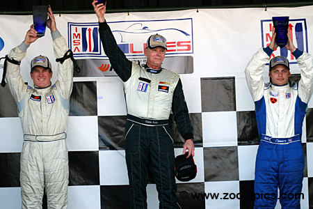 In the center from KC Racing is the winner Chris Funk. On the left is Funk's KC Racing teammate and runner-up, Kelly Toombs.