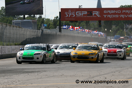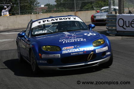 The series is part of the MAZDASPEED Motorsports Development Ladder that promotes champions of Mazda series to the next level of their career. The motivation for drivers to enter the MX-5 Cup division is an opportunity to earn a factory-supported ride in next year’s SCCA Pro Racing Speed World Challenge Touring Car Championship, which is valued at $250,000. All Mazda MX-5 Cup cars receive only minor upgrades. Bolt-on modifications include a new intake manifold and exhaust system which increases the engine output from 170 to 200-horsepower. All the vehicles are equipped with a six-speed manual transmission and a limited-slip differential. The suspension uses a coil-over kit with double adjustable shock absorbers and roll bars. Khumo tires are mounted on 17X8” wheels. Brake pads, fluid and lines are upgraded for the demands of racing. For safety, the Mazdas are fitted with an eight-point roll-cage welded into the car, racing seatbelts and a fire extinguishing system. The season consists of eight 45-minute timed races. The first event of 2008 will be held in May at Road Atlanta. Three weeks later, teams travel to Canada for round two. There is a break until July and then contests are conducted at Portland and Road America. Following these two races, the series returns to Canada to compete on the streets of Trois-Rivieres. In September, there are race weekends at Miller Motorsports Park and Thunderbolt Raceway. The finale is held in mid-October at Mazda Raceway Laguna Seca. Round five of the 2008 SCCA Pro Racing Playboy Mazda MX-5 Cup was held at Trois-Rivieres. Drivers would compete in a forty-five-minute contest around the eleven-turn 1.521-mile temporary street circuit.