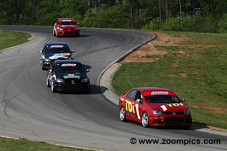 Identically prepared Volkswagen Jetta TDI is raced by the competitors. The Jetta uses a four-cylinder 2.0-liter TDI clean diesel engine, which runs on Ultra Low Sulphur Diesel. The power is transferred through a six-speed, double-clutch automatic DSG transmission. The package produces 170-horsepower with 258 ft-lbs of torque. The cars are fitted 240/640-18” Pirelli racing tires mounted on 8.5 X 18” alloy rims. Stopping the Volkswagen are four-piston calipers with 14” diameter rotors on the front and on the rear single-piston calipers with 10” diameter rotors. A Recaro racing seat, driver-side window safety net, six-point racing harness, FIA roll cage and an FIA-approved on-board fire extinguisher system are installed for safety. The Jetta has a curb weight of 2,844-pounds. The eight-race season begins at the end of April at Virginia International and ends in October at Road Atlanta. The weekend at New Jersey Motorsports Park will be a doubleheader.