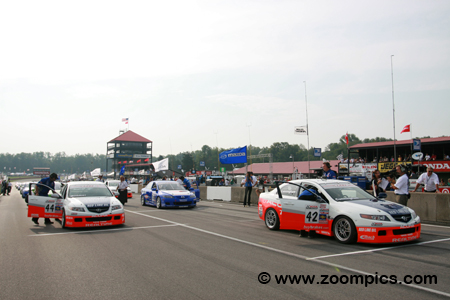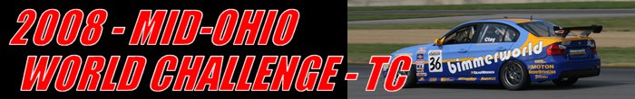 To prevent any driver/car combination from dominating the class and ensuring tight competition, the R.E.W.A.R.D.S. System was implemented. Introduced in 1995, R.E.W.A.R.D.S. is the acronym for ‘Rewarding of Equalizing Weight Assigned to Reduce Driver Sensitivity.' This weight equalization rule adds or removes ballast from a car based on the finishing position of a driver. The maximum amount of weight that can be removed from a car is 100-pounds. And, no more than 200-pounds can be added to a GT class car and 150-pounds to a Touring Car. There were ten-race weekends during the 2008 season. The series dropped Lowe’s Motor Speedway, Toronto and Mazda Raceway Laguna Seca from the calendar. Added were four new venues, Virginia International Raceway, Detroit, Road America and Thunderbolt Raceway. The Touring cars did not compete at Long Beach, but there was a standalone event for them at Virginia International Raceway and a doubleheader at Lime Rock Park. As in 2007, the opening round was in March at Sebring, Florida, but the season ended in early October at Road Atlanta. Round seven of the 2008 SCCA Pro Racing Speed World Challenge Touring Car Championship was held at the Mid-Ohio Sports Car Course. Competitors would race around the thirteen-turn 2.258-mile road course for fifty-minutes. |