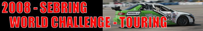 To prevent any driver/car combination from dominating the class and ensuring tight competition, the R.E.W.A.R.D.S. System was implemented. Introduced in 1995, R.E.W.A.R.D.S. is the acronym for ‘Rewarding of Equalizing Weight Assigned to Reduce Driver Sensitivity.' This weight equalization rule adds or removes ballast from a car based on the finishing position of a driver. The maximum amount of weight that can be removed from a car is 100-pounds. And, no more than 200-pounds can be added to a GT class car and 150-pounds to a Touring Car. There were ten-race weekends during the 2008 season. The series dropped Lowe’s Motor Speedway, Toronto and Mazda Raceway Laguna Seca from the calendar. Added were four new venues, Virginia International Raceway, Detroit, Road America and Thunderbolt Raceway. The Touring cars did not compete at Long Beach, but there was a standalone event for them at Virginia International Raceway and a doubleheader at Lime Rock Park. As in 2007, the opening round was in March at Sebring, Florida, but the season ended in early October at Road Atlanta. Round one of the 2008 SCCA Pro Racing SPEED World Challenge Championship was contested at Sebring International R aceway as part of the 12-Hours of Sebring weekend. Drivers were scheduled to compete on the seventeen-turn 3.74-mile road course for fifty-minutes or eighteen laps – whichever came first.