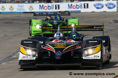 | Race two of the 2009 American Le Mans Series was held at the Street of St. Petersburg and sponsored by Acura. The Audi and Peugeot teams had returned to Europe. At St. Pete, the Acura’s LMP1 challenge would come from Intersport Racing’s Lola B06/10 and the overall threat from the faster LMP2 cars entered by Dyson Racing and Fernandez Racing. For the second consecutive race, the No. 66 de Ferran Motorsports Acura ARX-02a qualified on the pole, complements of Simon Pagenaud. However, Pagenaud would retire on course after several trips to the pits. The No. 9 Highcroft Racing Acura started on the outside of the front and ran a trouble-free contest to claim the class and overall victory. |