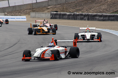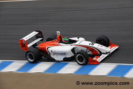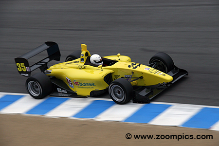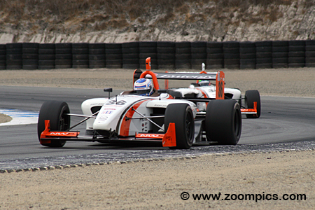 This modern-day series utilizes the Swift 016.a Formula Atlantic chassis. Swift Engineering introduced this model in 2006. The cars are powered by a 2.3-liter DOHC four-cylinder Mazda Cosworth MZR engine, which produces 300-horsepower. The transmission is a Swift/Hewland sequential shift with five forward speeds and a single reverse gear. Finally, Cooper tires are mounted on 15" X10" front and 15" X14" rear wheels. Many races were held in conjunction with the America Le Mans Series. The 2009 twelve-race championship kicks off in March at Sebring International Raceway as part of the 12-Hours of Sebring weekend. Teams then travel west to Miller Motorsports Park. The first of two double-header weekends is conducted at New Jersey Motorsports Park. The series remains in the Northeast with an event a Lime Rock Park. The second double-header is held at the Autobahn Country Club. In early August, round eight takes place at the Mid-Ohio Sports Car Course. The subsequent two events are north of the border at Canada's Trois-Rivieres and Mosport International Raceway. The penultimate round is during the Petit Le Mans weekend at Road Atlanta and the finale is held in mid-October at Mazda Raceway Laguna Seca. Each contest is forty-five minutes long, and competitors get a Mulligan (all drivers will only count points from their eleven best finishes during the twelve-race season). The final race of the 2009 Cooper Tires Presents the Atlantic Championship Powered by Mazda was held at Mazda Raceway Laguna Seca. Drivers would compete on the eleven-turn 2.238-mile road course. |