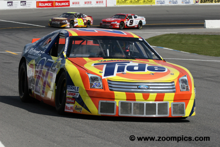 There were some changes to the 2009 schedule – mainly the order of the race weekends. The title chase started at Autodrome St. Eustache and was followed by a race at Delaware Speedway which replaced the event previously conducted at Cayuga Speedway. Next up was the first road course event of the year at Mosport Park. There would be an additional event held at this facility – a race on the oval track in August. After Mosport, teams made their second visit to Autodrome St. Eustache. The western swing included races at Vernon, Edmonton and Saskatoon. Saskatoon replaced the second date held by Cayuga Speedway in 2008. The crews traveled east to events in Quebec – Trois Rivieres and Montreal. Then it was back to Ontario and Barrie Speedway with the penultimate round taking place at Riverside Speedway in Nova Scotia. The championship would end in late September at Kawartha Speedway. In total, there were thirteen race weekends and the series would visit twelve different tracks in six provinces. The cars competing in the championship are constructed to specifications and rules typical of most stock car series. The chassis is a steel tube frame design covered with a fiberglass body and is required to weigh no less than 3000-lbs. Body styles are from manufacturers such as Dodge (Avenger), Pontiac (Grand Prix), Ford (Fusion) and Chevrolet (Monte Carlo SS). Engine type and displacement are dictated by the make and model of the vehicle. The carbureted eight-cylinder motors produce approximately 650-horsepower. Depending on the gearing, these cars are estimated to have a top speed of 160-mph. Round eleven of the 2009 NASCAR Canadian Tire Series was held at Barrie Speedway on the 1/3-mile oval track. Drivers would compete for 300-laps in a race sponsored by Torbram Electric and presented by the Source.