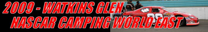 The cars competing in the NASCAR Camping World East Series are constructed to specifications and rules common to most stock car series. The chassis is a steel tube frame design covered with a fiberglass body. Body styles are from manufacturers such as Dodge (Charger), Ford (Taurus), Toyota (Camry) and Chevrolet (Monte Carlo SS and Impala SS). Engine type and displacement are dictated by the make and model of the vehicle. The carbureted eight-cylinder motors produce approximately 550-horsepower. Depending on the gearing, these cars are estimated to have a top speed of 160-mph. All race winners during the season, plus the champion, are invited to compete in the Toyota All-Star Showdown at Irwindale Speedway in January 2010. The reward is also offered to competitors from other NASCAR-sanctioned series. Round five of the 2009 NASCAR Camping World East Series was held at Watkins Glen International. The event was staged on the short course, a 2.450-mile layout with eleven turns. The 54-lap race was called the Tioga Downs Casino 125.