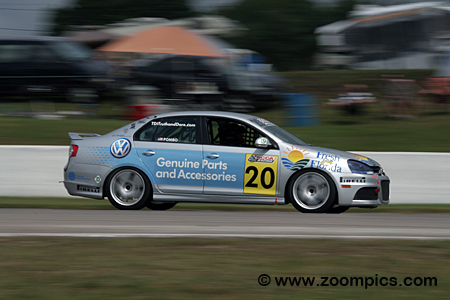 Identically prepared Volkswagen Jetta TDI is raced by the competitors. The Jetta uses a four-cylinder 2.0-liter TDI clean diesel engine, which runs on Ultra Low Sulphur Diesel. The power is transferred through a six-speed, double-clutch automatic DSG transmission. The package produces 170-horsepower with 258 ft-lbs of torque. The cars are fitted 240/640-18” Pirelli racing tires mounted on 8.5 X 18” alloy rims. Stopping the Volkswagen are four-piston calipers with 14” diameter rotors on the front and on the rear single-piston calipers with 10” diameter rotors. A Recaro racing seat, driver-side window safety net, six-point racing harness, FIA roll cage and an FIA-approved on-board fire extinguisher system are installed for safety. The Jetta has a curb weight of 2,844-pounds. The ten-race season begins at the end of April at Virginia International and ends in September at Road Atlanta. The weekends at Virginia and New Jersey Motorsports Park will be doubleheaders.