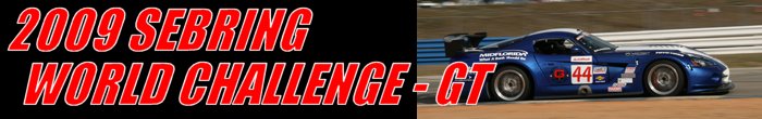 To prevent any driver/car combination from dominating the class and ensuring tight competition, the R.E.W.A.R.D.S. system was implemented. Introduced in 1995, R.E.W.A.R.D.S. is the acronym for ‘Rewarding of Equalizing Weight Assigned to Reduce Driver Sensitivity.' This weight equalization rule added or removed ballast from a car based on the finishing position of a driver. The maximum amount of weight that could be removed from a vehicle was 100-pounds. And, no more than 200-pounds could be added to a GT class car and 150-pounds to a Touring Car. During the 2009 season, there were ten-races for each category. The Touring cars did not compete at Long Beach. However, they raced twice at Mosport Park. As in 2008, the opening round was in March at Sebring, Florida and the championship ended in October at Mazda Raceway Laguna Seca, California. The first SCCA Pro Racing Speed World Challenge event of 2009 was held at Sebring International Raceway during the 57th Annual Mobil 1 12-Hours of Sebring weekend. Twenty-five competitors would enter the event with twenty-one starting the race on the seventeen-turn 3.74-mile road course.