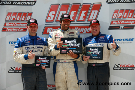 To prevent any driver/car combination from dominating the class and ensuring tight competition, the R.E.W.A.R.D.S. system was implemented. Introduced in 1995, R.E.W.A.R.D.S. is the acronym for ‘Rewarding of Equalizing Weight Assigned to Reduce Driver Sensitivity.' This weight equalization rule added or removed ballast from a car based on the finishing position of a driver. The maximum amount of weight that could be removed from a vehicle was 100-pounds. And, no more than 200-pounds could be added to a GT class car and 150-pounds to a Touring Car. During the 2009 season, there were ten-races for each category. The Touring cars did not compete at Long Beach. However, they raced twice at Mosport Park. As in 2008, the opening round was in March at Sebring, Florida and the championship ended in October at Mazda Raceway Laguna Seca, California. Round six of the 2009 SCCA Pro Racing Speed World Challenge season was held at the Autobahn Country Club. Twelve Touring Car competitors raced on the nineteen-turn 3.531-mile road course.