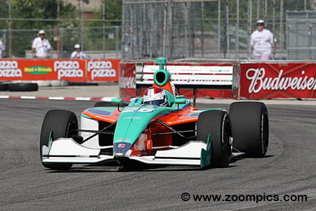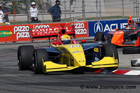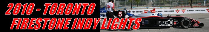 Drivers compete in the Dallara IPS, designed and manufactured for the Infiniti Pro Series. The open-wheel, single-seat racer is equipped with a ground-effect underbody and outboard wings front and rear. The monocoque chassis is constructed using carbon fiber and composites. The Dallara has a minimum weight of 1,430 pounds, which includes all lubricants and coolants used during the event, but does not include fuel or the driver. Firestone Firehawk racing tires are mounted on 15-inch diameter x 10 front and 15-inch diameter x 14 rear wheels. The car is powered by a 3.5-liter Infiniti Q45 engine which produces approximately 450 horsepower and is fitted to a Ricardo six-forward gear transmission with a sequential shifter. Infiniti Pro Series costs are tightly controlled by the Indy Racing League, with the Dallara IPS costing $137,900 (including the data acquisition system). Round seven of the 2010 Firestone Indy Lights Series was held at Toronto’s Exhibition Place. Drivers would compete in a fifty-lap contest around the eleven-turn 1.755-mile temporary street circuit.