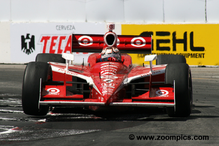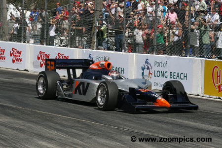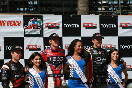 Teams continued to use the Dallara IR-05 chassis but the Honda engine deal was supposed to end in 2009. However, the contract for Honda to be the series only engine supplier was extended to the 2011 season. The Honda HR7R-HR11R used by entrants is 3.5-liter aluminum alloy V8-engine. The fuel-injected normally-aspirated motor produces 650-horsepower at 10,300-rpm. Finally, early in the year Indy Racing League founder, Tony George resigned. Replacing George as the leader of the series was Randy Bernard. Round four of the 2010 Izod IndyCar championship was held during the Long Beach Grand Prix weekend. Competitors would race around the eleven-turn 1.968-mile street course for eighty-five laps. There was a total of twenty-five entries.