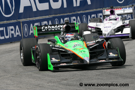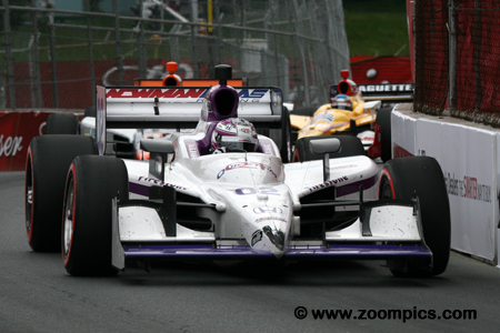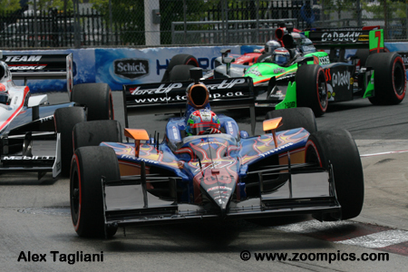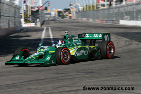 Teams continued to use the Dallara IR-05 chassis but the Honda engine deal was supposed to end in 2009. However, the contract for Honda to be the series only engine supplier was extended to the 2011 season. The Honda HR7R-HR11R used by entrants is 3.5-liter aluminum alloy V8-engine. The fuel-injected normally-aspirated motor produces 650-horsepower at 10,300-rpm. Finally, early in the year Indy Racing League founder, Tony George resigned. Replacing George as the leader of the series was Randy Bernard. Round ten of the 2010 IZOD IndyCar season took place at Toronto’s Exhibition Place - a 1.755-mile eleven-turn street course.